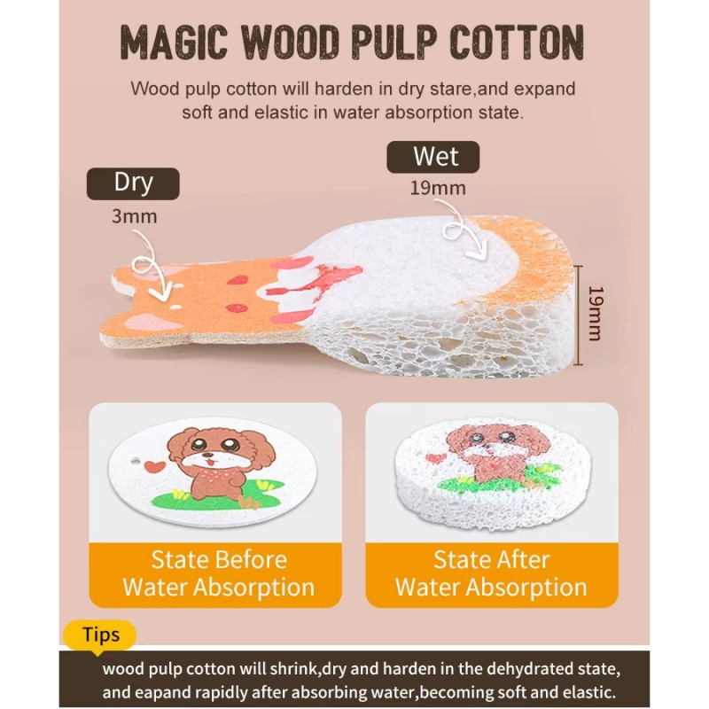 【HEET PRODUCT VAN TIKTOK】 De cartoon natuurlijke houten pulp katoenen reinigingsdoek zijn gemaakt van natuurlijke houten pulp katoen, die zeer absorberend is. Met de zachte en delicate vezel is het gemakkelijker om de olie effectief en diep te verwijderen. De sponzen worden gecomprimeerd voordat ze water ontmoeten, ze worden zacht in de staat van waterabsorptie en worden gehard na het drogen.